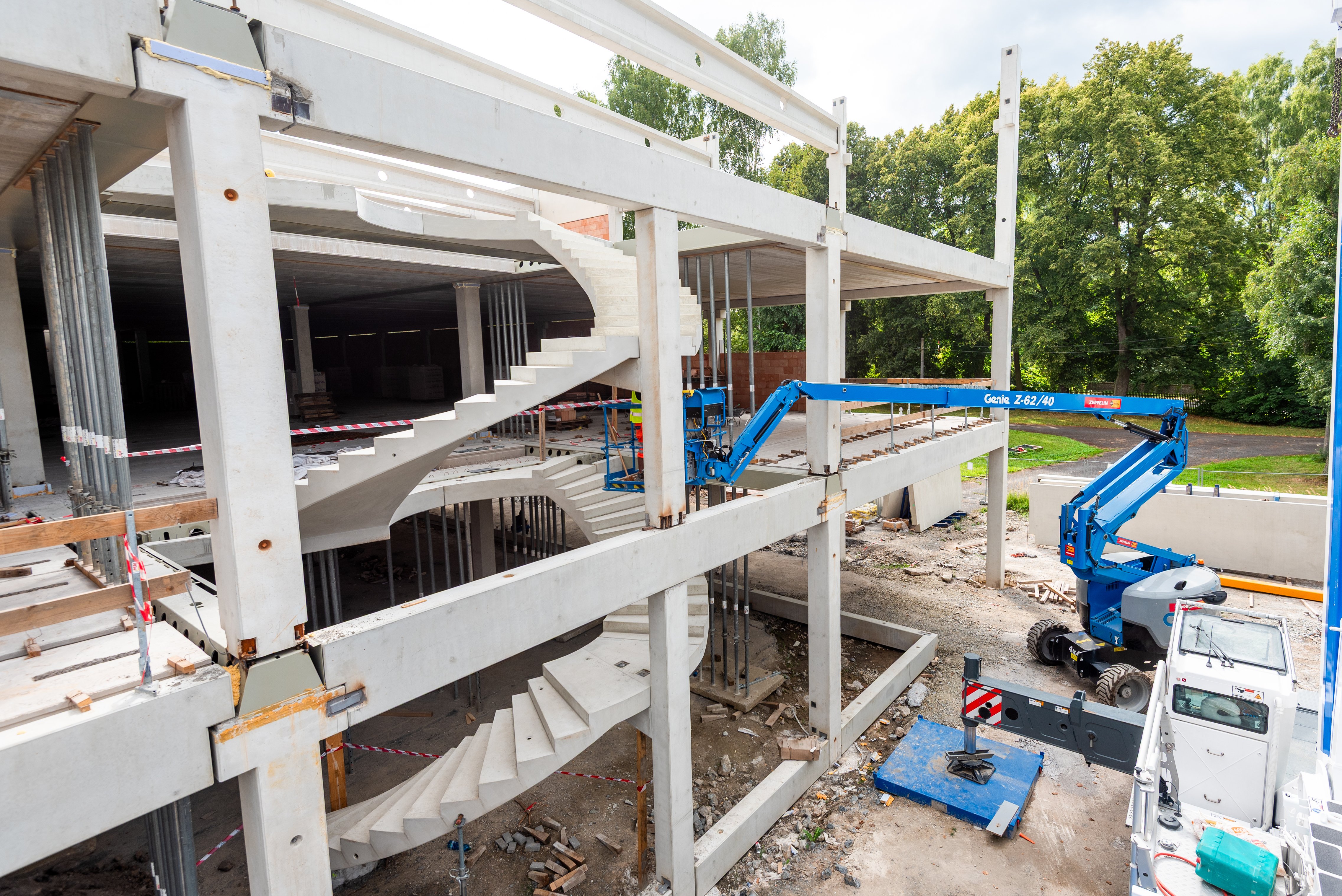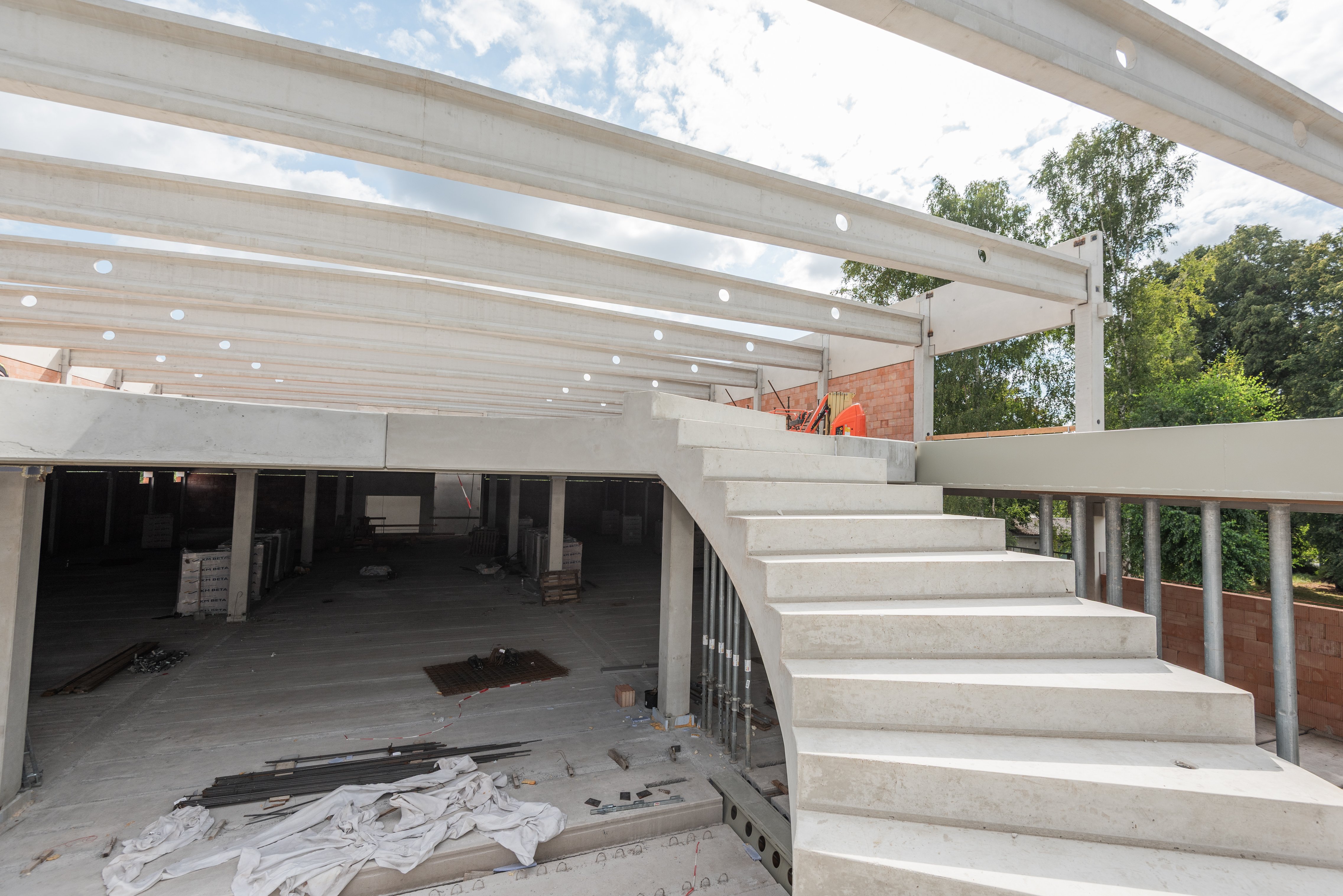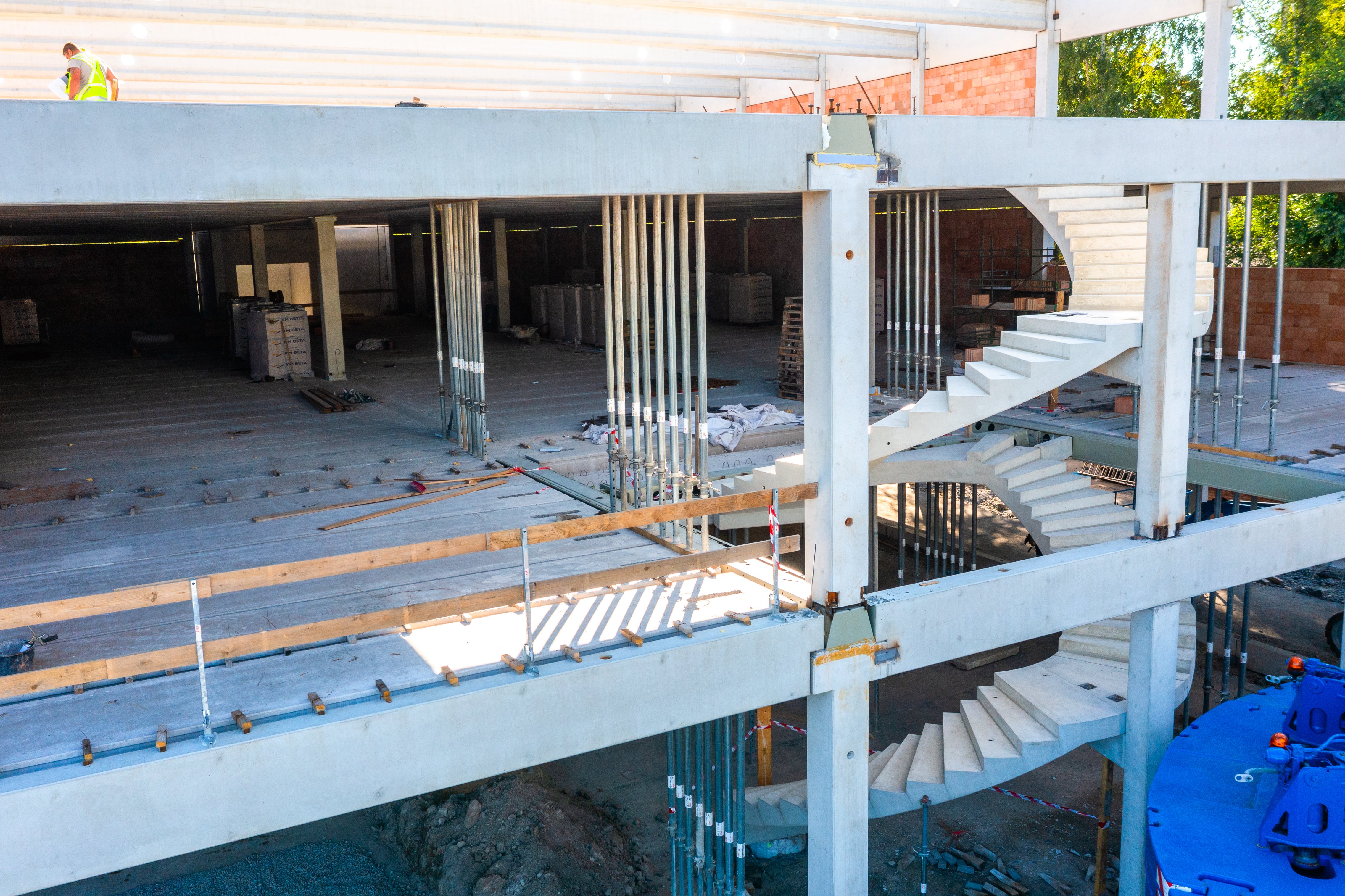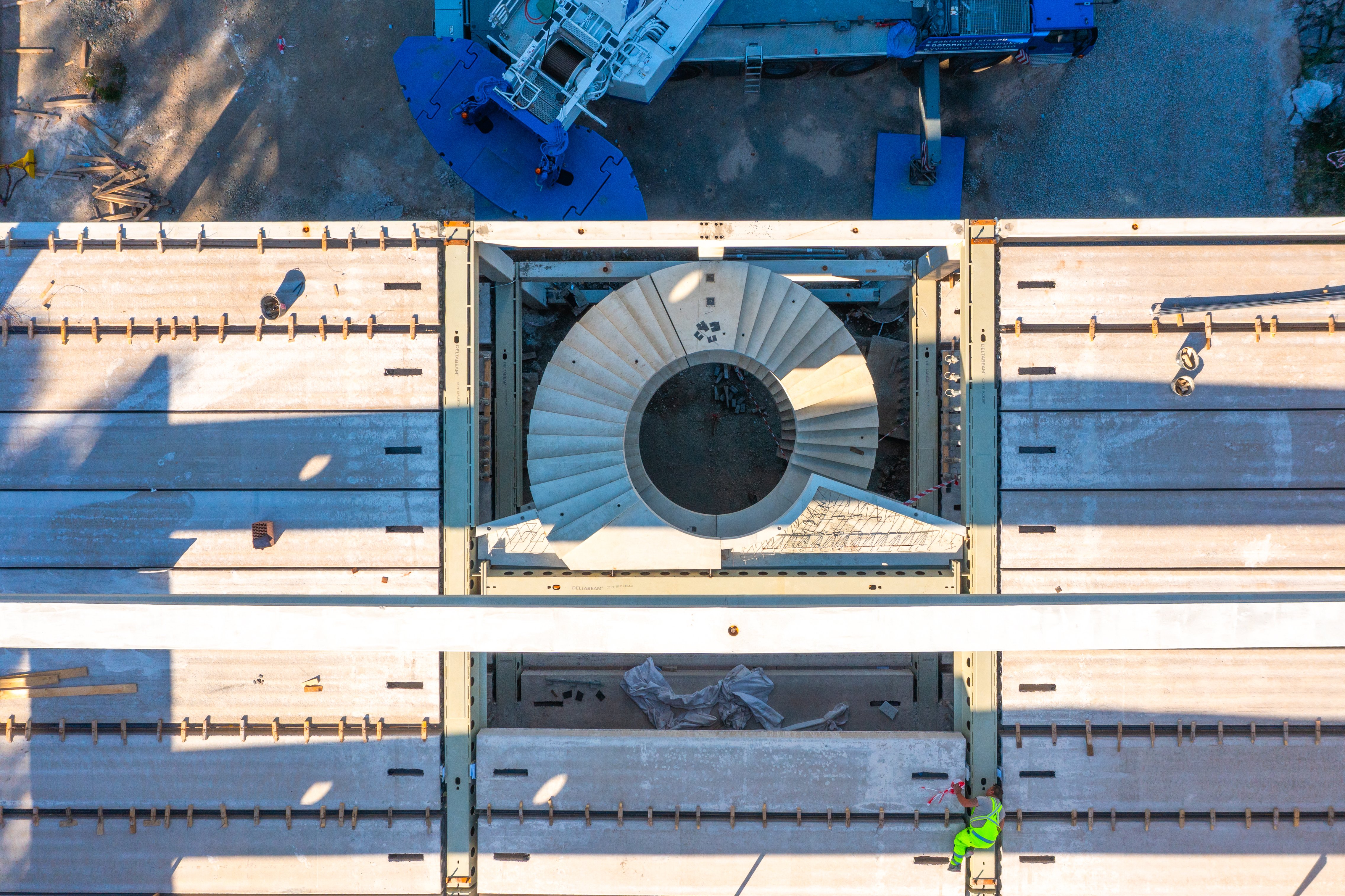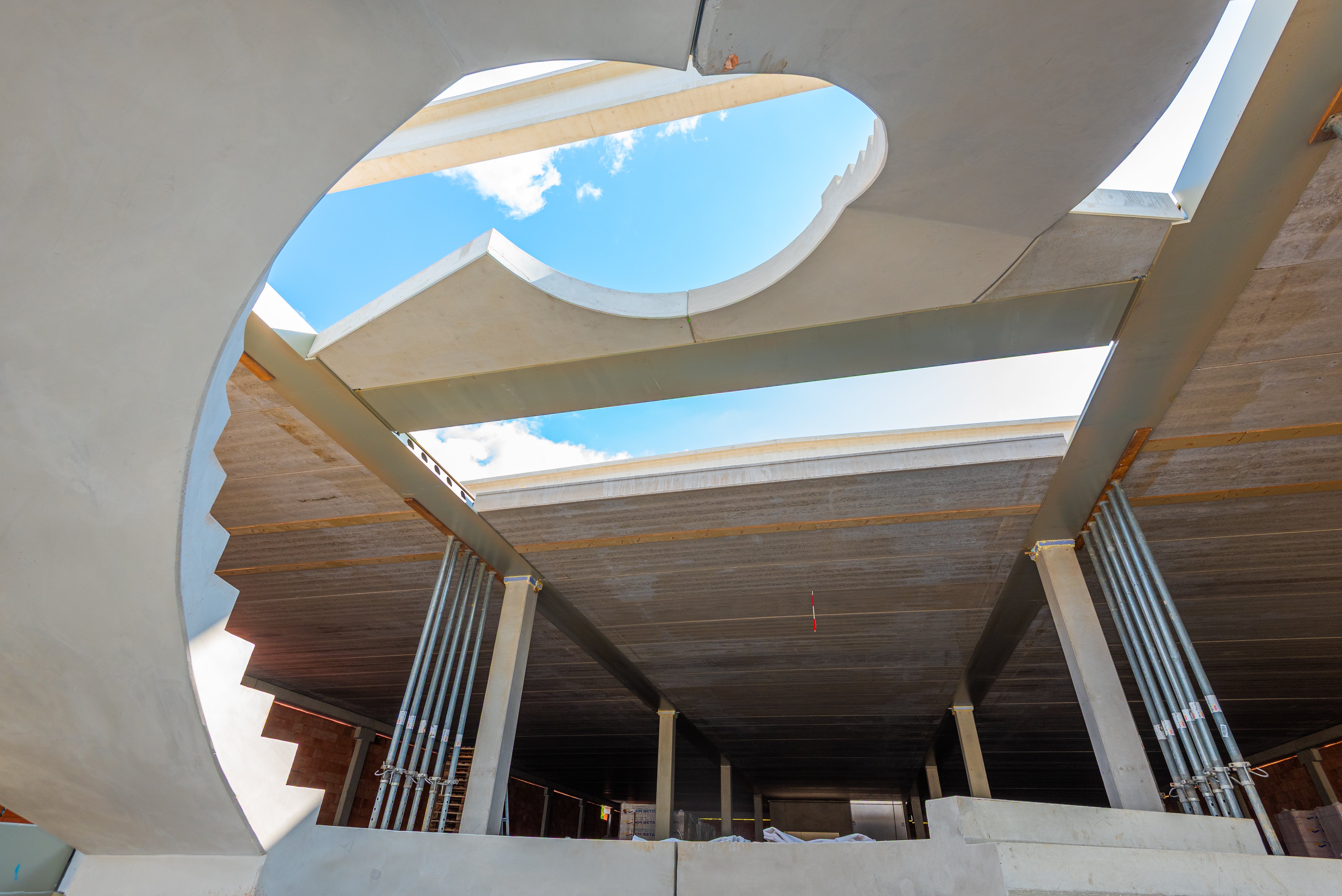 Sloupy vynášejí prefabrikované průvlaky po obvodu a ocelové hybridní průvlaky ve vnitřních polích. Jednotlivá podlaží jsou osazena prefabrikovanými stropními panely Spiroll tloušťky 320 mm.