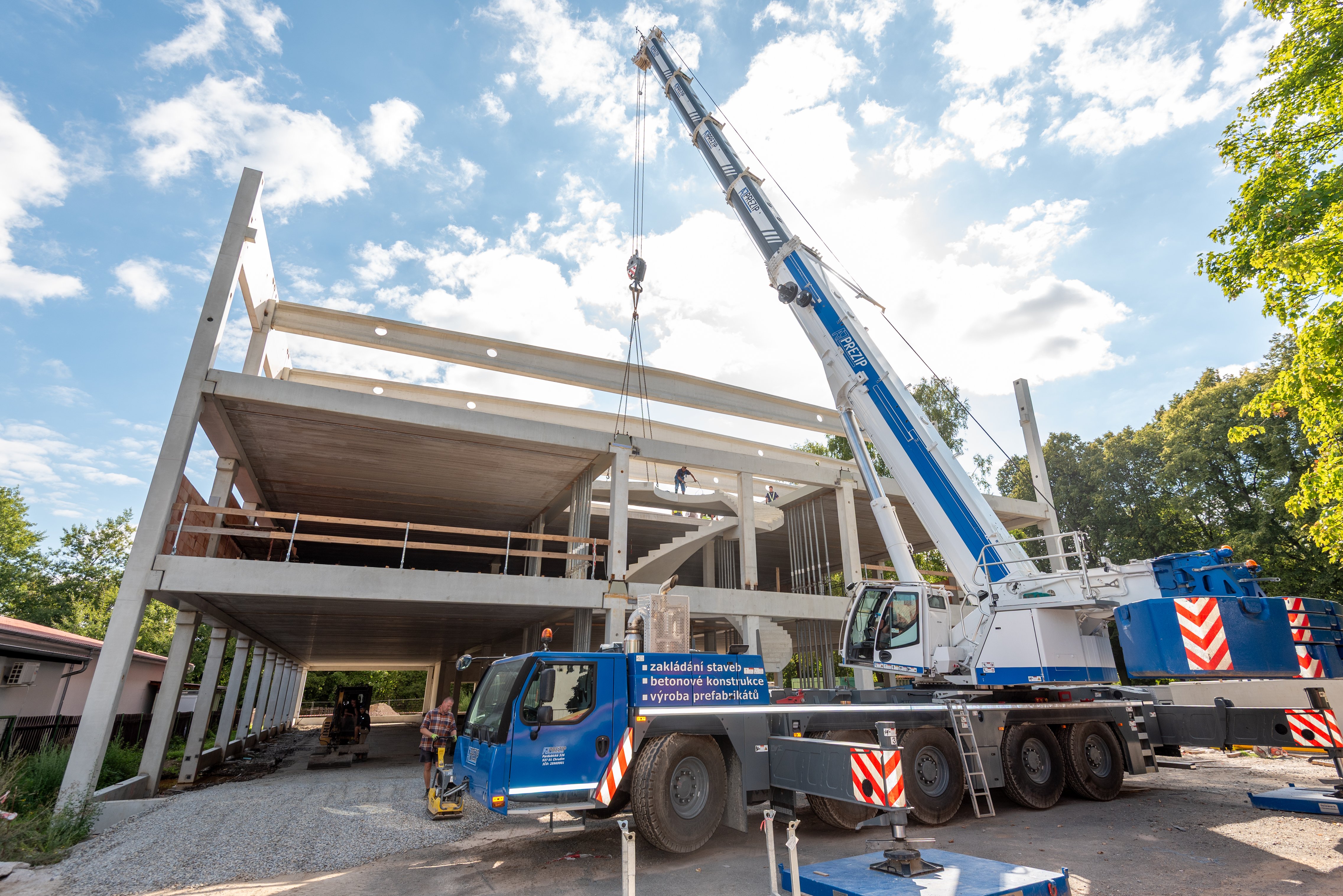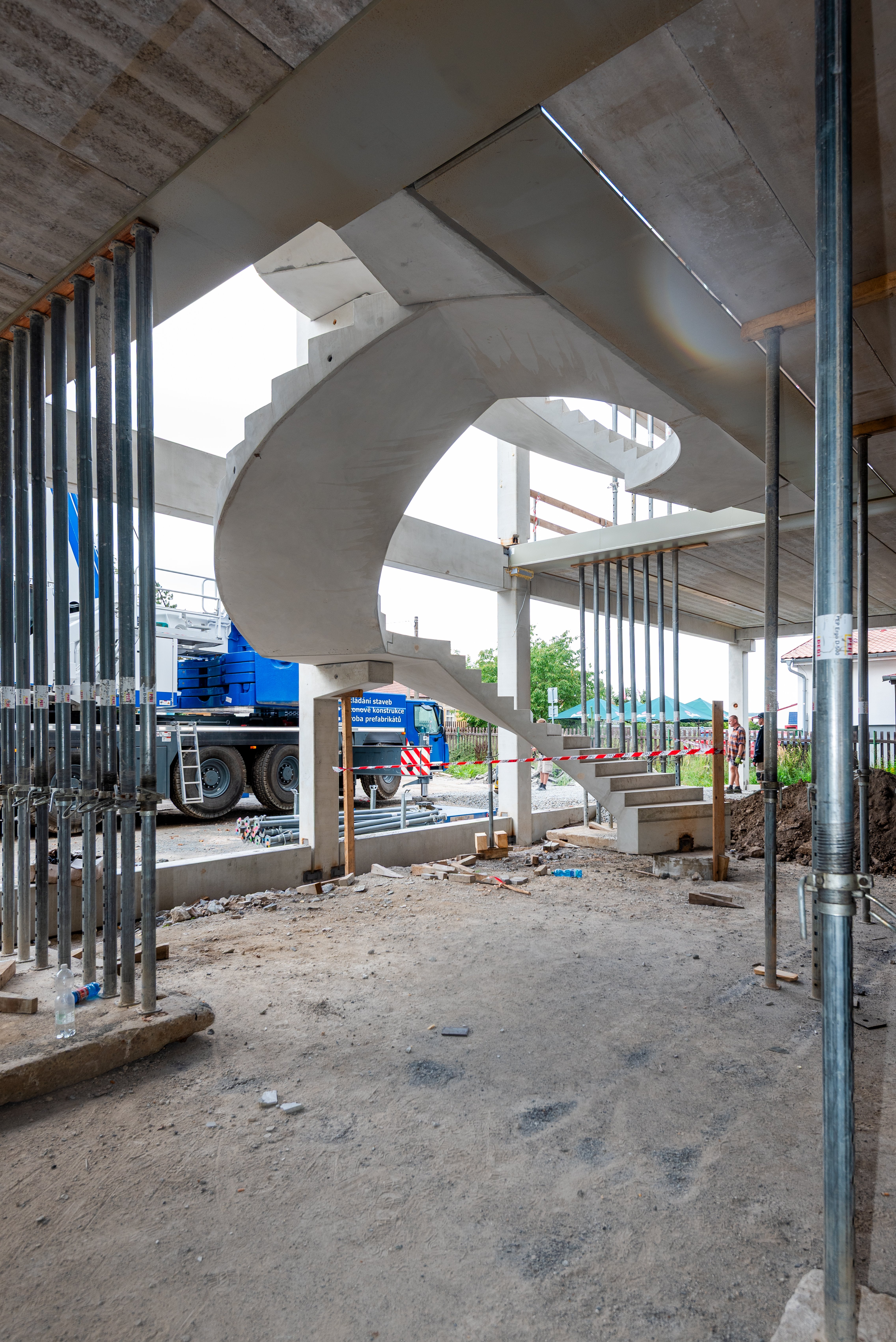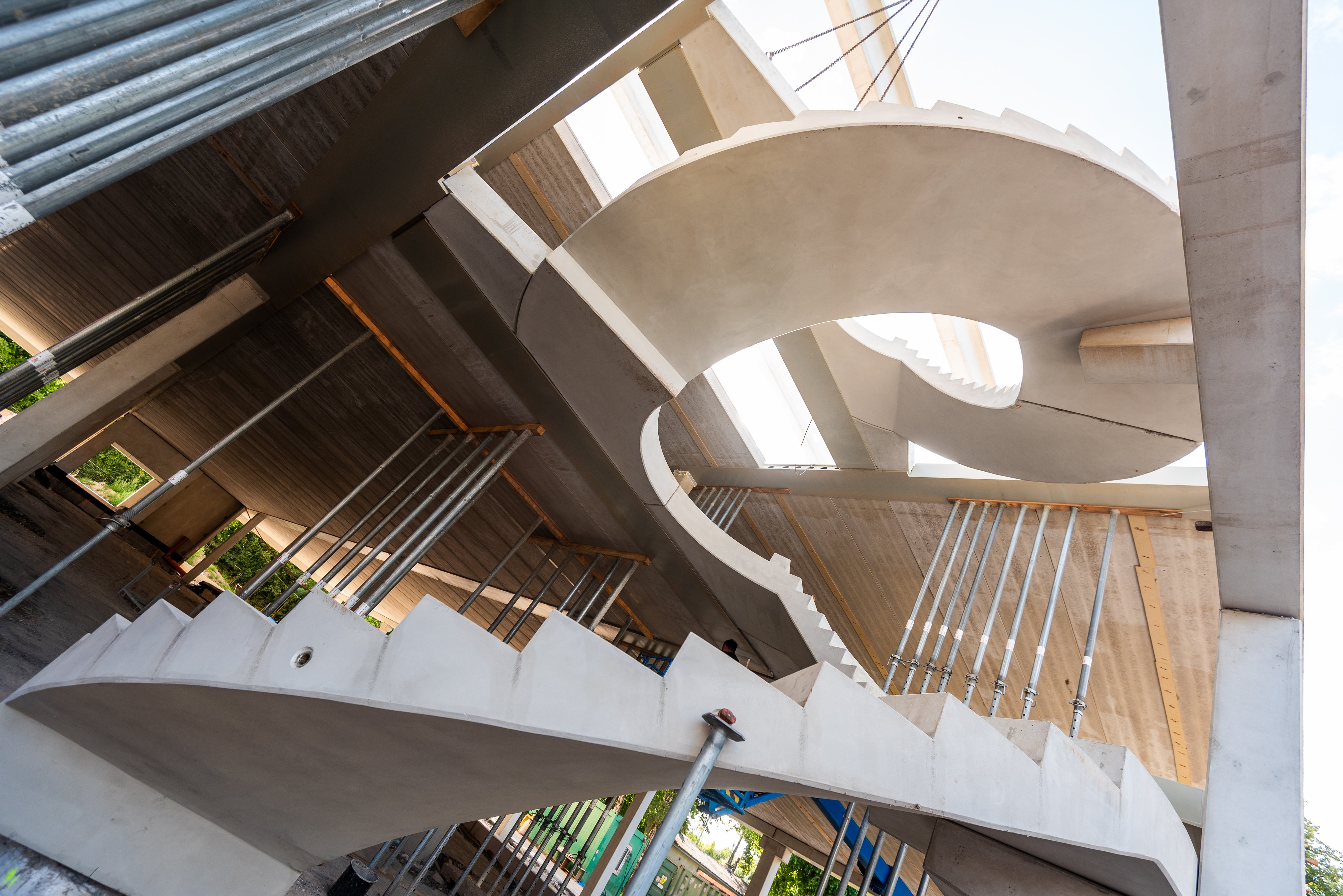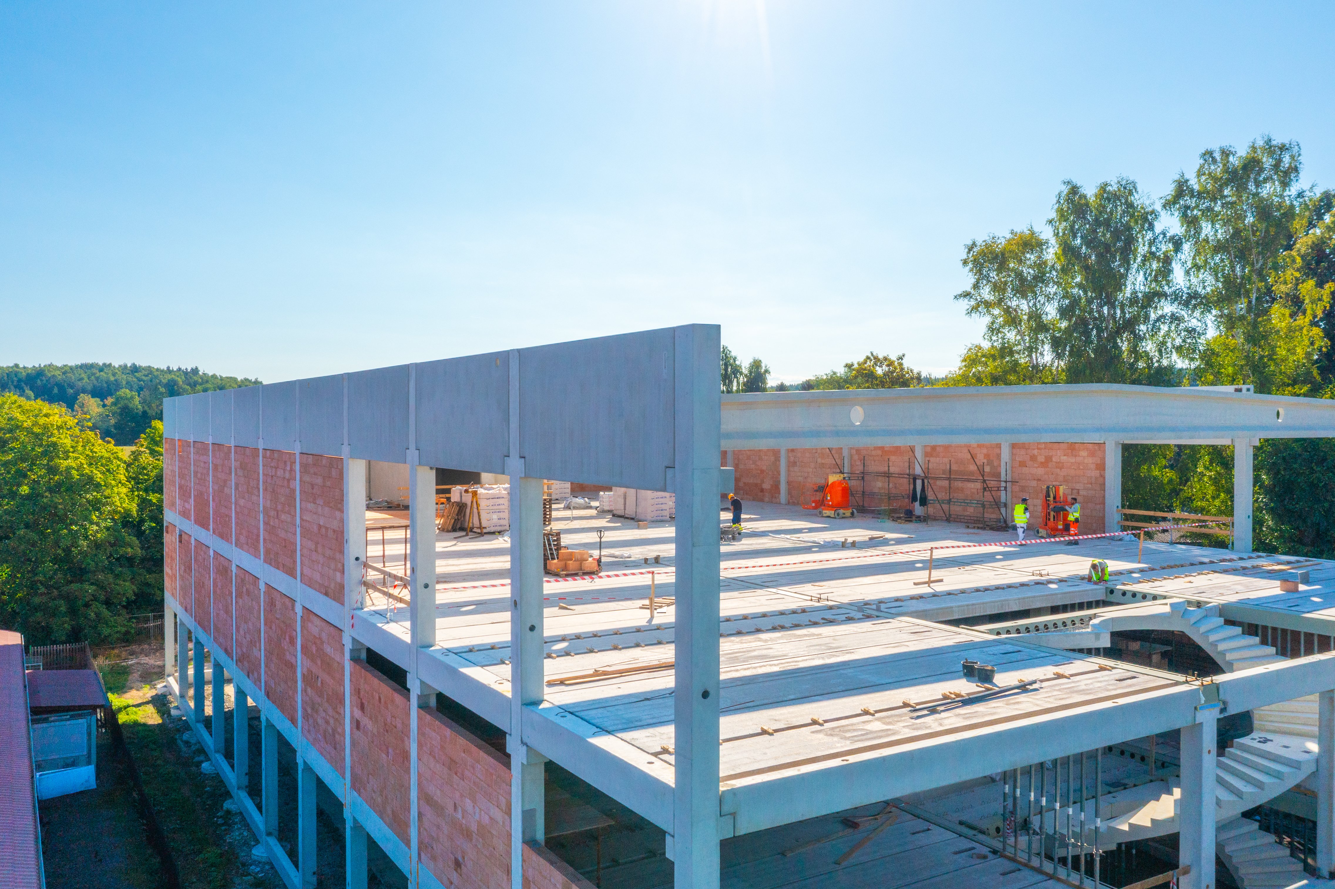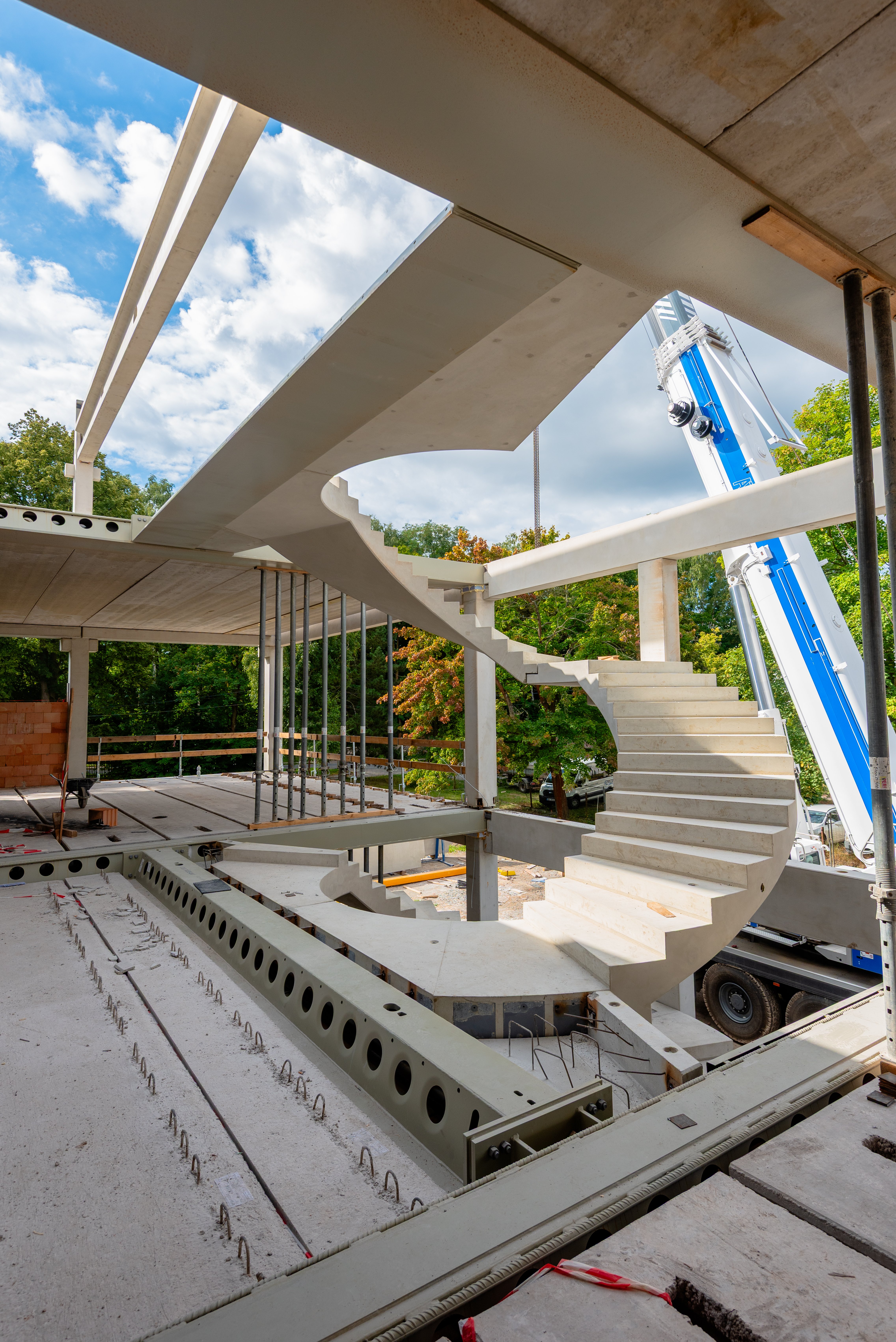Sloupy vynášejí prefabrikované průvlaky po obvodu a ocelové hybridní průvlaky ve vnitřních polích. Jednotlivá podlaží jsou osazena prefabrikovanými stropními panely Spiroll tloušťky 320 mm.